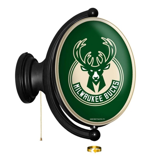 The Original Milwaukee Bucks Rotating Lighted Wall Sign both lights up and spins while allowing you to displaying your passion for the Bucks. Whether it's your fan cave, office, game room, or garage, this decorative sign is the perfect addition to any wall. It showcases the latest in LED technology and only uses 12 watts of power. Injection molded, it comes with an 8 foot power cord and a metal pull chain. Mounting hardware included and installation takes no more than 10 minutes. This is an officially licensed product of the NBA and made in the USA.