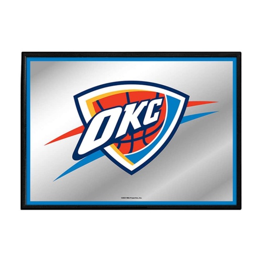 Our Oklahoma City Thunder Framed Mirror is perfect sign to show your team pride! With its simple and modern design, our logo mirrors display the Oklahoma City logos in a style that fits any setting. Our high resolution digitally printed images provide clean and vibrant color. Made of Mirrored acrylic with hi-impact styrene frames, our safe and lightweight mirrors are built to last. Our Framed Mirror is ideal for your office, garage, fan cave, or game room. Whether purchasing as a gift for a recent grad, sports superfan, or for yourself, you can take satisfaction knowing you are buying a mirror that is officially licensed by the Thunder and made in the USA.