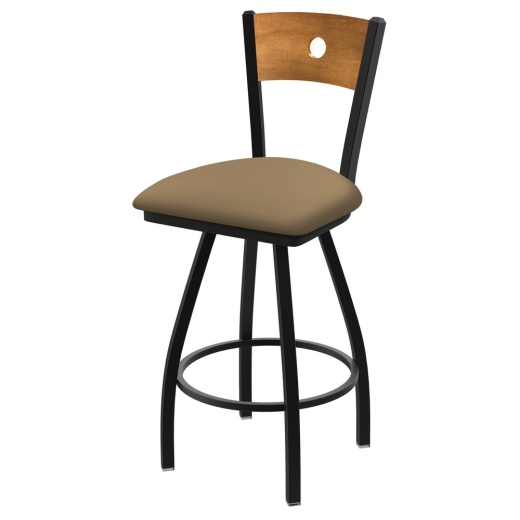Customize your very own bar stool with the help of Holland Bar Stool Co. This Black Wrinkle XL Voltaire swivel bar stool has a contemporary design featuring a stylish wood back available with a natural or medium finish. The XL stool line from Holland Bar Stool features a larger base providing superior stability and the seat is 2" wider and 1" deeper than standard seats. The frame is made from commercial quality 16 gauge, 1 1/4 inch tube steel with solid mig welded joints to guarantee strength and durability. The powder coated finish resists chips and scratches and ensures a long-lasting, rich appearance. The wood seats are 1 1/4 inch solid hardwood and are dished for amazing posterior comfort, making sitting for minutes or hours a pleasure. The cushion seats are of the highest quality as well, utilizing a breathable, commercial grade vinyl or fabric. At the heart of the cushion is 2 1/2 inches of highly-dense, US made foam that provides maximum support and will not breakdown in a couple years. You won't find a higher quality stool on the market. If you are going to finish your bar or dining area - do it right, with a stool from the Holland Bar Stool Co. ** 5 year residential structural frame warranty ** Lifetime residential warranty 52 ball bearing swivel**Made In USA**