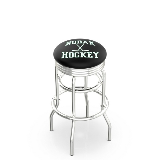 Made for the ultimate sports fan, you will be proud to show where your loyalty lies with this impressive Officially Licensed stool from the Holland Bar Stool Co. This L7C3C double ring swivel stool has a style that brings you back in time featuring a 2.75" chrome ribbed accent ring that conceals the swivel for a very clean look. A state of the art print process is used in applying specially formulated UV vinyl ink in numerous stages to produce a sharp, crisp, clear image to ensure a perfect reproduction of the logo. You won't find a higher quality logo stool on the market. The frame is made from commercial grade steel that is strong, durable, and triple chrome-plated to guarantee a long-lasting, rich finish capable of withstanding the abuse of your rowdiest of friends for years to come. The cushion seats are of the highest quality as well, utilizing a breathable, commercial grade vinyl. At the heart of the cushion is 2 1/2 inches of highly-dense, US made foam that provides maximum support and will not breakdown in a couple years. If you're going to finish your bar, game room, or man cave do it right- with a logo stool made in the USA by the Holland Bar Stool Co.