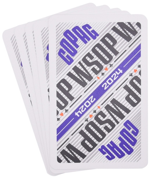 These are two regulation-narrow size (bridge) decks that measure 2.25-by-3.5-inches (W x H), and are made of practically indestructible PVC plastic material for years of use. Each deck includes 52 cards. Jokers are NOT included. These cards were lightly used in tournament play at the 2024 World Series of Poker.