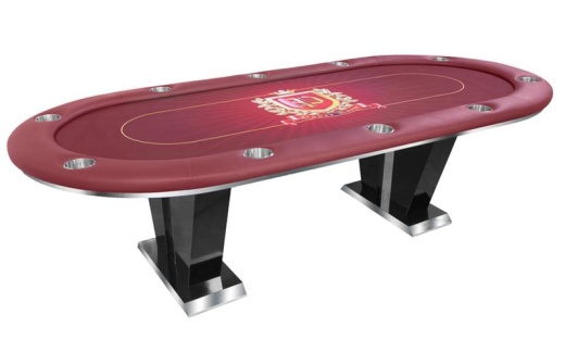 Made with a combination of two-tone premium Laminate or Wood and chrome finish. This modern stainless steel pedestal base is paired with a luxurious top to create this contemporary Texas Hold'em Table. This table is available with or without dealer position and metal chip tray. Ferrari table is completed with stainless steel cup holders, padded armrest made with high density foam, and casino quality custom layout. You can customize the layout with your own personalized design or logo.