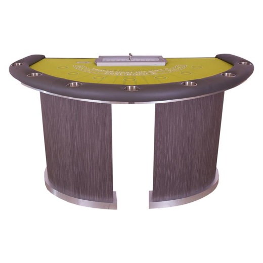 All blackjack tables are custom built to demand attention. Bold, luxurious, and with pristine attention to detail, they exceed the expectations of any player, from the professionals at the casino, to the recreational. Customization and quality make these tables the best of the best. The customization process offers free design consultations, ensuring that the tables are tailored to fit the exact needs of the customers. Every table is masterfully crafted and manufactured USA. All table tops include an option to add a dealing shoe, discard holder, card cut, drop-box with money slot or money paddle, 12-inch tube metal lock and chip tray which holds 750 chips. Brass or stainless steel cup holders can be added to the leatherette armrest or wood inlay, along with the option to add custom layouts and custom logos. All tables have a lifetime warranty. Nationwide.