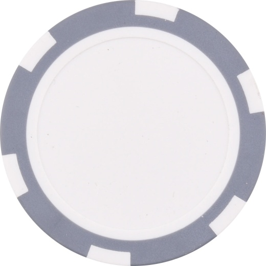 11.5 grams clay/abs composite poker chips with 1.12" diameter recessed center area for sticker inlays or direct printing.