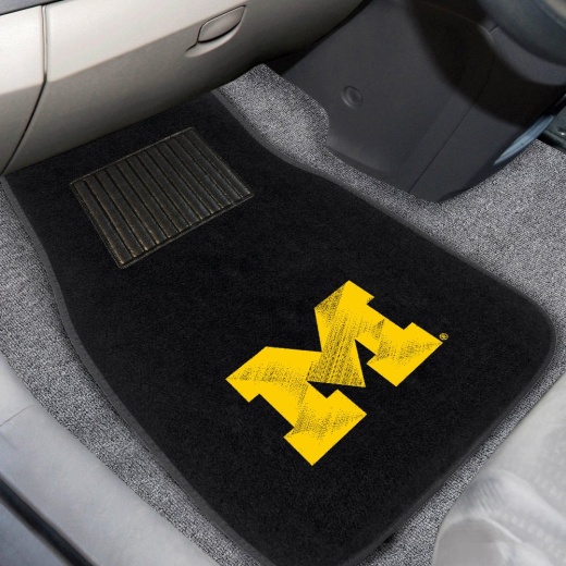 2 Piece Embroidered Car Mat Set is a subtle way to show off your team pride. The black polyester carpet features a full true team color embroidered logo at the base of the mats. Embroidering the teams logo means that it wont fade or peel. Keeps the mats looking new with a vacuum and spot cleaning. On the drivers side mat, there is a heal pad to prevent ware to carpet. The backs of these mats is made from vinyl to ensure durability and the nibs help keep the mats in place while driving. To try and achieve fitment in as many different vehicle types they mats measure 17 inches wide by 25.5 inches long.