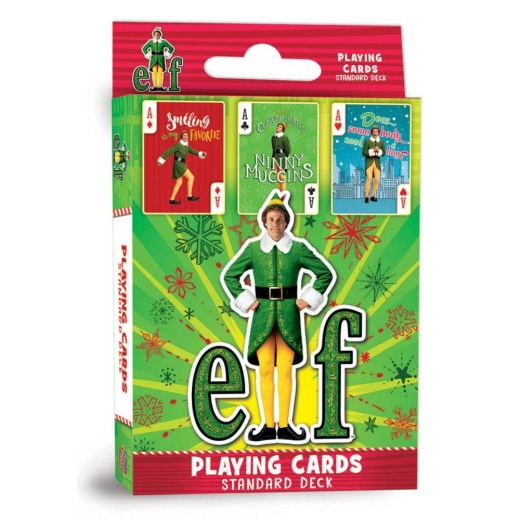 Get ready for a holly, jolly good time with this Elf Playing Cards deck by Masterpieces! Featuring iconic characters including Papa Elf, Santa, and Buddy the Elf himself - this deck is perfect for fans of the holiday classic and will transport you into the heart of the story while you enjoy your favorite card games. With Buddy’s infectious enthusiasm, you'll be saying “The best way to spread Christmas cheer is singing loud for all to hear!” every time you deal a hand. Whether you're facing off in a game of poker or creating your own adventures, this deck is perfect for game nights, collectors, or anyone who longs for the adventure of a lifetime. So grab your Elf playing cards, and as Buddy says, “You sit on a throne of lies!”—but don’t worry, this deck is 100% authentic fun! “I’m here to get you into the Christmas spirit!” Officially Licensed New Line Productions product.