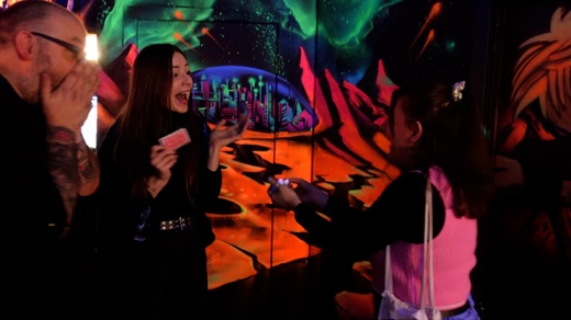 You borrow your spectators AirPods, remove one from the case and hand them the case back. You now visually stretch their Airpod to an unbelievable length (this really looks great). You take the impossible looking Airpod and instantly shrink it back to it's normal size!